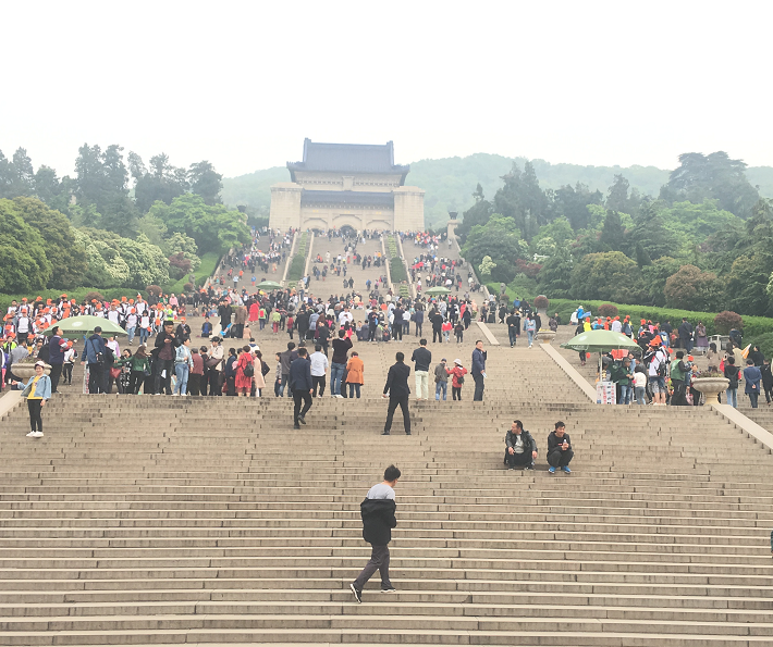 4.14號第二天我們一行人來到了我國偉大的革命先行者孫中山先生的陵墓中山陵,道路兩側有著“綠蔭長廊 ”的梧桐樹,相信大家都想去爬那392臺階,并瞻仰孫中山先生雕像。當你站在大平臺上,舉目遠眺,群峰皆居腳下,陵園景色盡收眼底,崗巒疊翠,松柏蒼蒼,亭臺樓閣,氣象萬千。